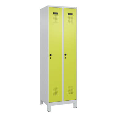Spind Evolo PLUS mit hochwertiger Einbrennbeschichtung für hohe UV- und Korrosionsbeständigkeit. Geschlossene und abgeschrägte Seitenprofile für leichte Innenreinigung und komfortable Entnahme von Kleidung. Türen mit Soft-Anschlag und geschlossenen Seitenprofilen für höchste Stabilität, mit reinigungsfreundlichem Belüftungslochbild oben und unten. Aufhängung in stabilen Drehbolzen. Mit schwarzen, selbstklebenden Kunststoff-Etikettenrahmen, inkl. Klarsichtkunststoff-Abdeckung und weißem Etikett zur individuellen Beschriftung. Achtung: Anlieferungsmöglichkeit durch Sattelschlepper muss gegeben sein.