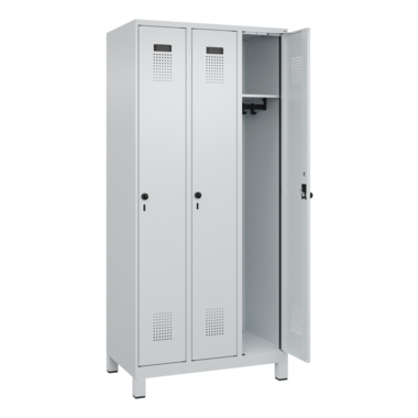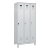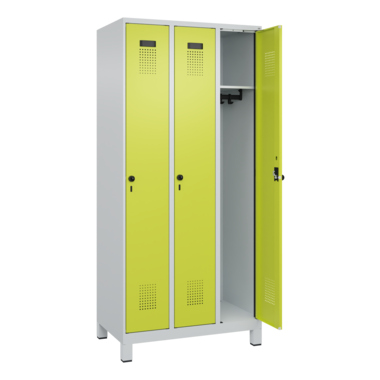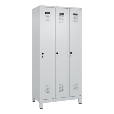 Spind Evolo PLUS mit hochwertiger Einbrennbeschichtung für hohe UV- und Korrosionsbeständigkeit. Geschlossene und abgeschrägte Seitenprofile für leichte Innenreinigung und komfortable Entnahme von Kleidung. Türen mit Soft-Anschlag und geschlossenen Seitenprofilen für höchste Stabilität, mit reinigungsfreundlichem Belüftungslochbild oben und unten. Aufhängung in stabilen Drehbolzen. Mit schwarzen, selbstklebenden Kunststoff-Etikettenrahmen, inkl. Klarsichtkunststoff-Abdeckung und weißem Etikett zur individuellen Beschriftung. Achtung: Anlieferungsmöglichkeit durch Sattelschlepper muss gegeben sein.