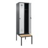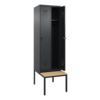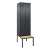 Spind Evolo PLUS mit hochwertiger Einbrennbeschichtung für hohe UV- und Korrosionsbeständigkeit. Geschlossene und abgeschrägte Seitenprofile für leichte Innenreinigung und komfortable Entnahme von Kleidung und Taschen. Geeignet für verdeckte Kabelführung. Mit hinteren Belüftungsöffnungen oben und unten. Innen 1 Ablageboden, darunter 1 stabile Garderobenstange aus Ovalprofil mit 3 verdrehsicheren Doppel-Schiebehaken. Inkl. Systemaufnahme. Sitzbank mit verstellbaren Bodengleitern für einfachen Niveauausgleich. Mit Türöffnungsbegrenzer, als Schutz vor Überdehnen der Tür. Türen rechts angeschlagen. Türen mit Soft-Anschlag und geschlossenen Seitenprofilen für höchste Stabilität. Aufhängung in stabilen Drehbolzen. 4 ergonomische Sicherheits-Drehriegel für Vorhangschlösser mit Bügelstärke 6 bis 8 mm. Mit Kunststoff-Etikettenrahmen, schwarz, selbstklebend, inkl. Klarsichtkunststoff-Abdeckung und weißem Etikett zur individuellen Beschriftung. Achtung: Anlieferungsmöglichkeit durch Sattelschlepper muss gegeben sein.