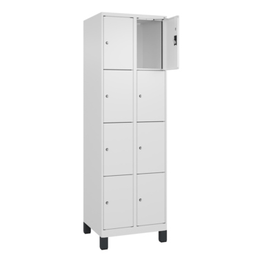 Schließfachschrank Evolo PLUS mit hochwertiger Einbrennbeschichtung für hohe UV- und Korrosionsbeständigkeit. Geschlossene und abgeschrägte Seitenprofile für leichte Innenreinigung und komfortable Entnahme von Kleidung und Taschen. Geeignet für verdeckte Kabelführung. Mit Bodengleitern als praktischer Schrank- und Fußbodenschutz. Tür(en) rechts angeschlagen. Türen mit Soft-Anschlag und geschlossenen Seitenprofilen für höchste Stabilität. Mit reinigungsfreundlichem Belüftungslochbild oben und unten. Aufhängung in stabilen Drehbolzen. Türöffnungsbegrenzer, als Schutz vor Überdehnen der Tür. Achtung: Anlieferungsmöglichkeit durch Sattelschlepper muss gegeben sein.