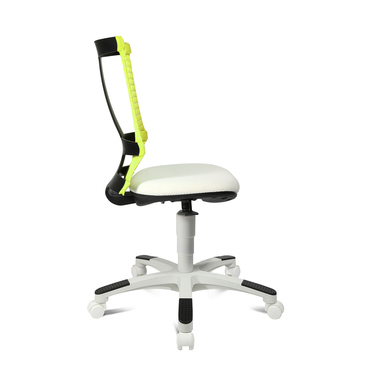 Gesundes Sitzen spielend leicht. Gebe unseren Kleinsten den besten Start für eine gesunde Haltung mit dem S'neaker! In der prägenden Wachstumsphase ist gesundes Sitzen besonders wichtig - deswegen sollte die Zeit auf keinen Fall auf einem unergonomischen Stuhl verbracht werden. Die besondere Rückenlehne des S'Neaker bietet alle ergonomischen Features, die ein moderner Kinderstuhl haben sollte. Ergonomisch geformte Rückenlehne mit atmungsaktivem 3D-Netz/Schlingengewebe bespannt; inklusive synchroner Federwirkung. Rückenlehne stufenlos in Tiefe verstellbar. Bequem gepolsterter Flachsitz mit abgerundeter Sitzvorderkante. Stufenlose Sitzhöhenverstellung mit Spezial-Kinder-Toplift; Auslösgewicht ab ca. 25 kg. Formschönes und stabiles Fußkreuz in Weiß mit schwarzen Einlegern. Ausgerüstet mit lastabhängig gebremsten Sicherheitsdoppelrollen für Teppichböden.