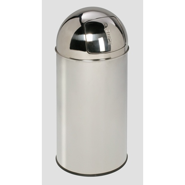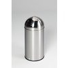 Abfallsammler D 35 mit Einwurfklappe in Edelstahl. Ausgerüstet mit verzinktem Inneneinsatz und bodenschonendem Kantenschutz. Mit abnehmbarem Kopfteil für einfaches Entleeren.