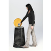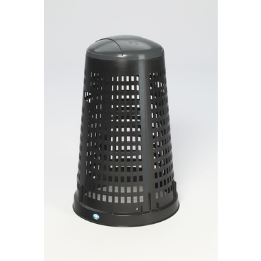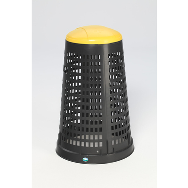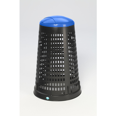 Abfallsammler aus Kunststoff. Ausgerüstet mit Klemmring zur Sackbefestigung und farbigem Deckel.