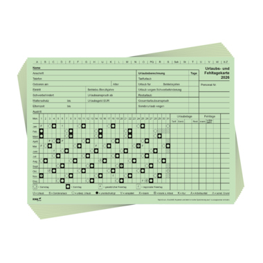 RNK Verlag Fehltagekarte 21 x 14,8 cm (B x H) 12 Monate/1 Seite Karton grün 10 St./Pack.