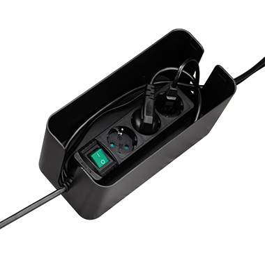 Kabelsalat samt Steckdosenleiste ordentlich verstecken mit der Kunststoffbox mit beidseitigen Kabelschlitzen für einfaches Verstauen. Geräte bleiben angeschlossen. Gummifüße für rutschfesten Stand. Ideal für Büro und Zuhause - für ein stilvolles Wohnbild am Schreibtisch, TV etc.